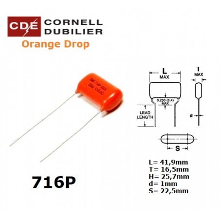 Orange Drop capacitors: manufactured with polypropylene film and extended foil. Polypropylene has a very low dissipation factor, low dielectric absorption and exhibits excellent capacitance stability. These characteristics combined with the direct connection of the lead wire to the extended foil electrode makes them series ideal for high current, high pulse applications.