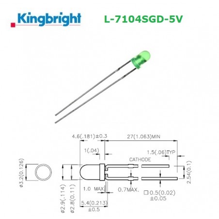 • Kingbright L-7104SGD-5V, GREEN 3mm LED