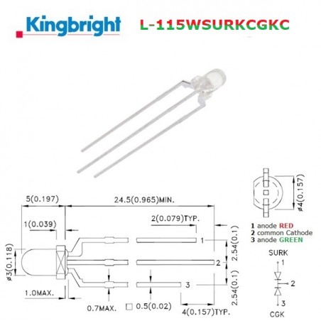The Hyper Red source color devices are made with AlGaInP on GaAs substrate Light Emitting Diode. The Green source color devices are made with AlGaInP on GaAs substrate Light Emitting Diode.