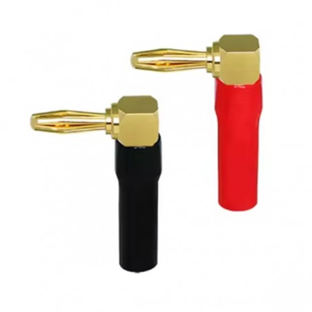 Bugle Boy BLACK and RED angled banana plugs 4mm in soft silicone, gold pin