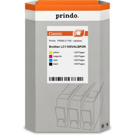 ORIGINAL Prindo Multipack nero / ciano / magenta / giallo PRSBLC1100 Classic ~1425 Seiten alternativa per Brother LC1100VALBPDR (LC-1100bk + LC-1100c + LC-1100m + LC-1100y)
