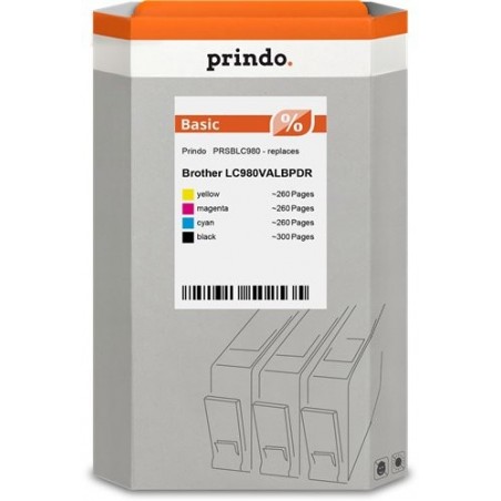 ORIGINAL Prindo Multipack nero / ciano / magenta / giallo PRSBLC980 Basic ~1080 Seiten alternativa per Brother LC980VALBPDR (LC-980bk + LC-980c + LC-980m + LC-980y)