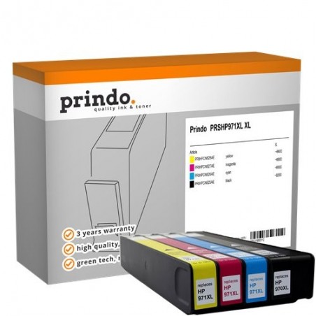 ORIGINAL Prindo Multipack nero / ciano / magenta / giallo PRSHP971XL Basic XL ~29000 Seiten alternativa per HP CN625AE (970XL) + CN626AE (971XL) + CN627AE (971XL) + CN628AE (971XL)