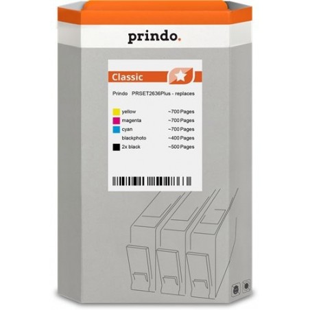 ORIGINAL Prindo Multipack nero / ciano / magenta / giallo PRSET2636Plus Classic ~3500 Seiten Prindo CLASSIC: L'alternativa per Epson 2x T2621 + 1x T2631 + 1x T2632 + 1x T2633 + 1x T2634