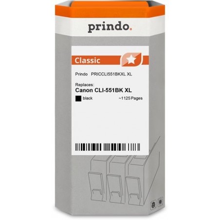 ORIGINAL Prindo Cartuccia d'inchiostro nero PRICCLI551BKXL Classic XL ~1125 Seiten 11ml Prindo CLASSIC: L'alternativa per Canon CLI-551bk XL (6443B001)
