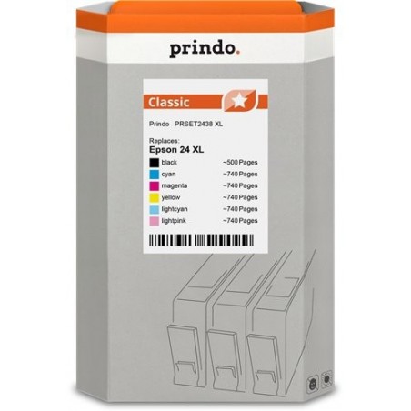 ORIGINAL Prindo Multipack nero / ciano / magenta / giallo / ciano (chiaro) / magenta (chiaro) PRSET2438 Classic XL ~4200 Seiten alternativa per Epson T2431 + T2432 + T2433 + T2434 + T2435 + T2436