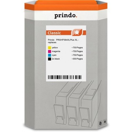 ORIGINAL Prindo Multipack nero / ciano / magenta / giallo PRSHP364XLPlus Classic XL ~2800 Seiten alternativa per HP 364XL: 2x CN684EE + 1x CB323EE + 1x CB324EE + 1x CB325EE