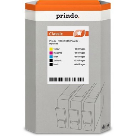 ORIGINAL Prindo Multipack nero / ciano / magenta / giallo PRSET3357Plus Classic XL ~3410 Seiten compatibile per Epson 2x T3351 + 1x T3361 + 1x T3362 + 1x T3363 + 1x T3364