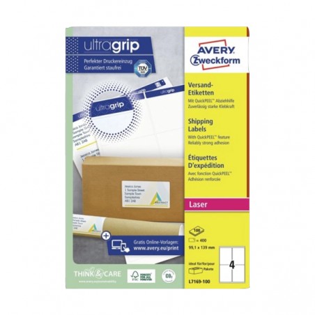 ORIGINAL AVERY Zweckform Etichette Bianco L7169-100 Versandetiketten Etichette BlockOut per spedizioni, Laser/Inkjet/Laser a colori, Bianco, 400pcs.