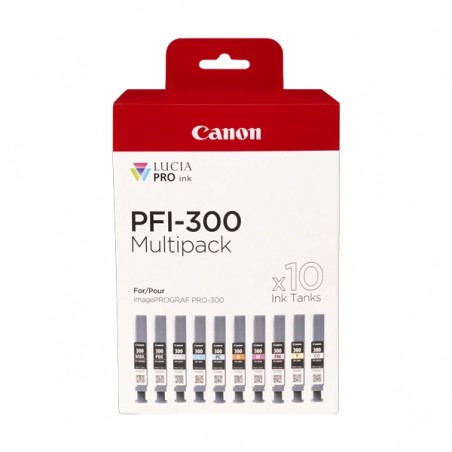ORIGINAL Canon Multipack Nero (opaco) / Nero (Foto) / ciano / magenta / giallo / ciano / magenta / Rosso / Grigio / Trasparente PFI-300 10 Tintentanks 4192C008 ~6686 Seiten