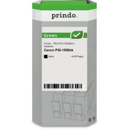 ORIGINAL Prindo Cartuccia d'inchiostro nero PRICPGI1500BKG Green ~400 Seiten Prindo GREEN: Riciclata e rinnovata, di alta qualità, con indicatore di livello - compatibile con Canon PGI-1500bk (9218B001)