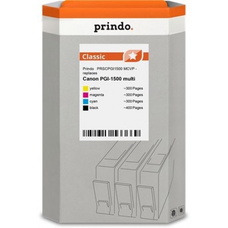 ORIGINAL Prindo Multipack nero / ciano / magenta / giallo PRSCPGI1500 MCVP Classic ~1300 Seiten Prindo CLASSIC: L'alternativa, di alta qualità, completamente funzionale - compatibile con Canon PGI-1500bk PGI-1500c PGI-1500m PGI-1500y(9218B005)