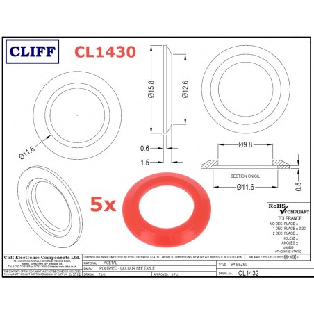 • 5x Cliff CL1430, RED plastic washer for jack SCJ644 (BJ101, BJ124, BJ125)