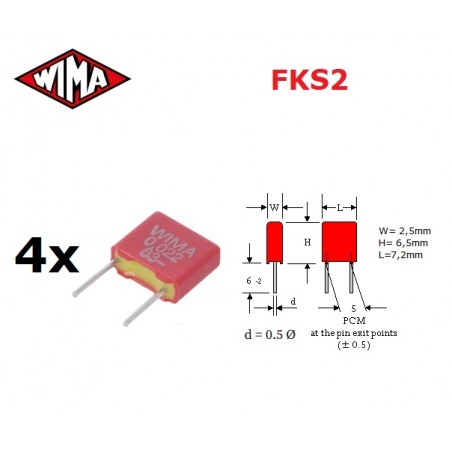 • 4x Wima FKS2 0,0033uF/100V, condensatore in poliestere p: 5, (332)