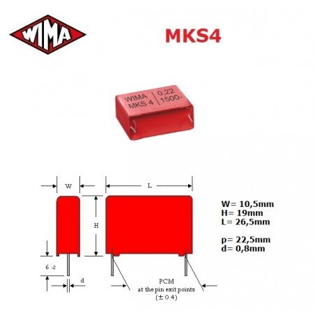 Wima MKS4 1uF/400V, condensatore poliestere 10%, p: 22,5, MKS4G041005G00KSSD