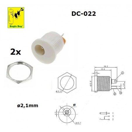 2x Bugle Boy DC-022 jack tonda 2,1mm BIANCA per alimentazione, made in China