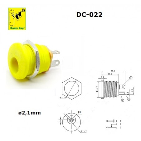 Bugle Boy DC-022 jack tonda 2,1mm GIALLA per alimentazione, made in China
