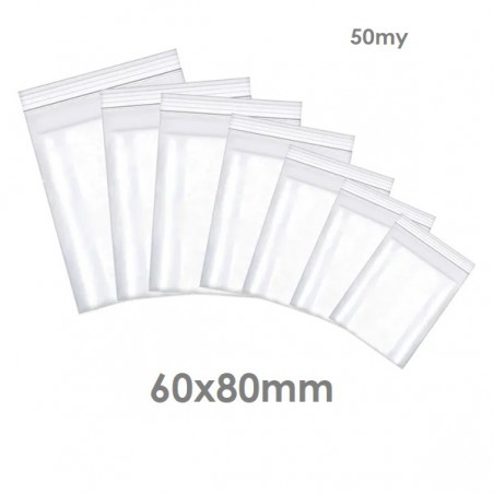 100x Bustine 60x80mm richiudibili con zip a pressione, 50my
