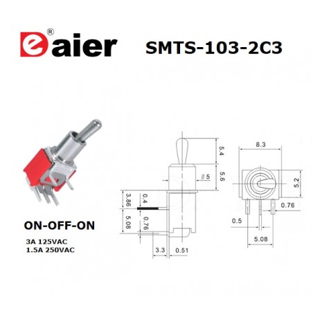 • Daier SMTS-103-2C3, interruttore SUB-miniatura ON-OFF-ON a levetta, pin da PCB