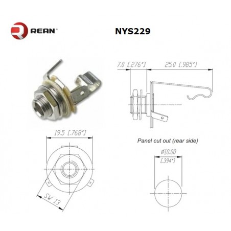 Rean NYS229, jack 6,35mm MONO, circuito aperto