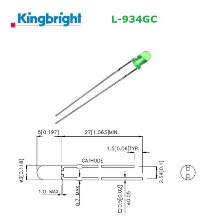 • Kingbright L-934GC, LED 3mm VERDE