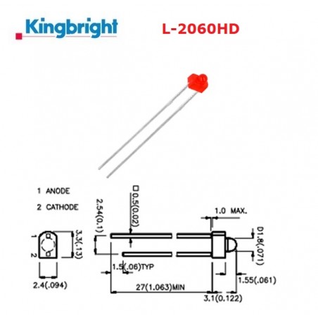 • Kingbright L-2060HD, LED 1,8mm ROSSO