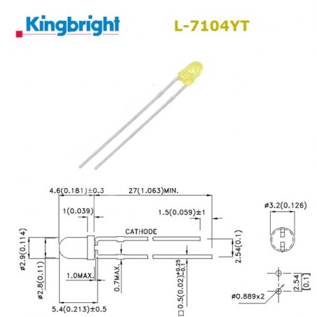 • Kingbright L-7104YT, LED 3mm GIALLO trasparente