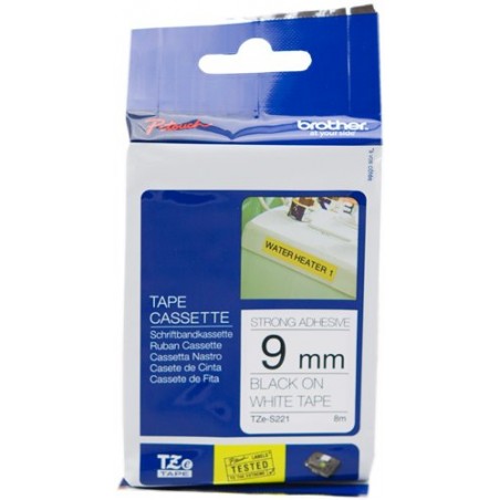 ORIGINAL Brother Nastro Nero su bianco TZe-S221 TZ-S221 9 mm x 8 m, laminato