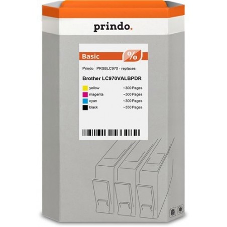 ORIGINAL Prindo Multipack nero / ciano / magenta / giallo PRSBLC970 Basic ~1250 Seiten PRINDO BASIC: L'alternativa economica per Brother LC970VALBPDR (LC-970bk + LC-970c + LC-970m + LC-970y), probabilmente senza indicazione di livello d'inchiostro