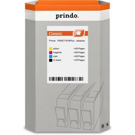 ORIGINAL Prindo Multipack nero / ciano / magenta / giallo PRSET1816Plus Classic ~2290 Seiten alternativa per Epson 2x T1811 + 1x T1812 + 1x T1813 + 1x T1814