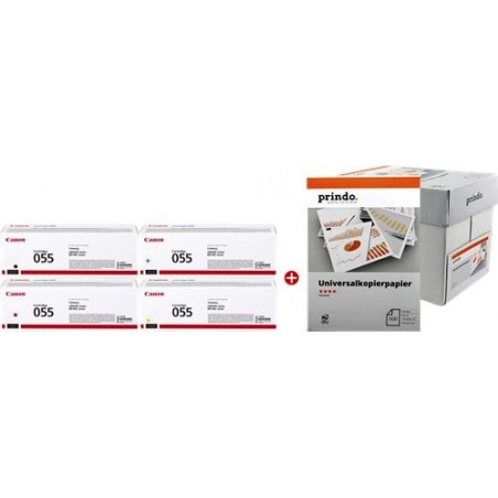ORIGINAL Canon Value Pack nero / ciano / magenta / giallo 055 MCVP + Prindo Universal Papier 2500 Blatt ~8600 Seiten