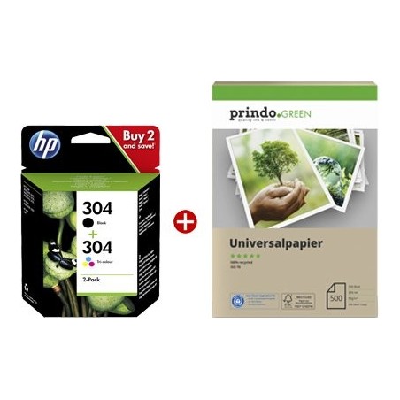 ORIGINAL HP Value Pack nero / differenti colori + Prindo Green Recyclingpapier 500 Blatt 304 ~220 Seiten