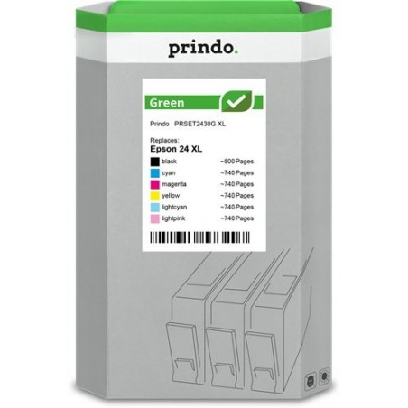 • ORIGINAL Prindo Multipack nero / ciano / magenta / giallo / ciano (chiaro) / magenta (chiaro) PRSET2438G Green XL ~4200 Seiten