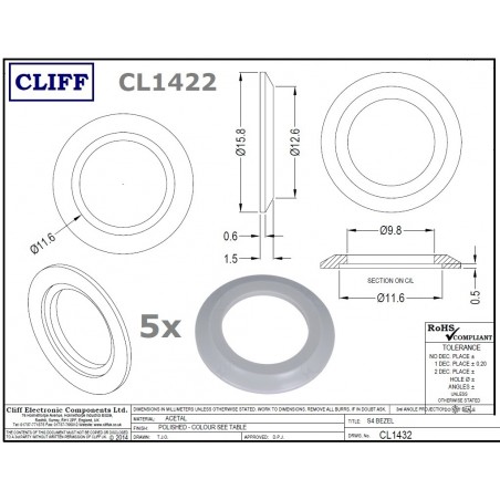 5x Cliff CL1422, rondella in plastica GRIGIA per jack SCJ644 (BJ101, BJ124, BJ125).