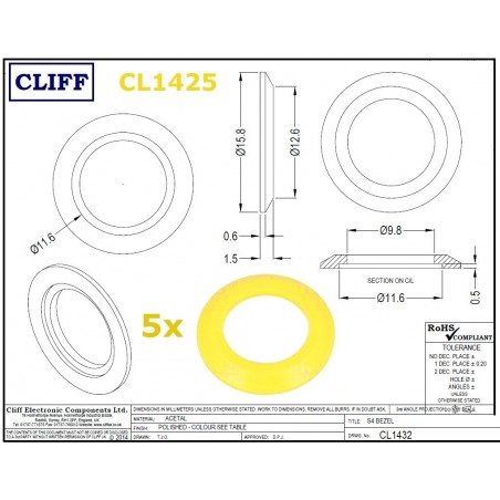 5x Cliff CL1425, rondella in plastica GIALLA per jack SCJ644 (BJ101, BJ124, BJ125)