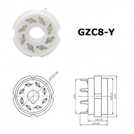 • Zoccolo octal GZC8-Y in ceramica da stampato/PCB